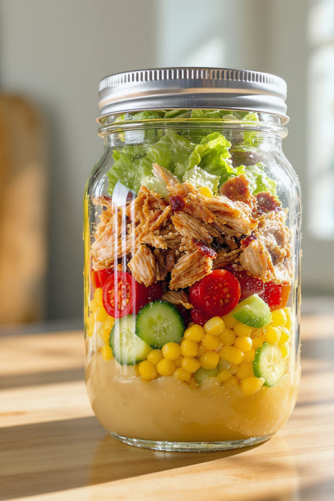 14) BBQ Chicken Mason Jar Salad (Grab-and-Go)