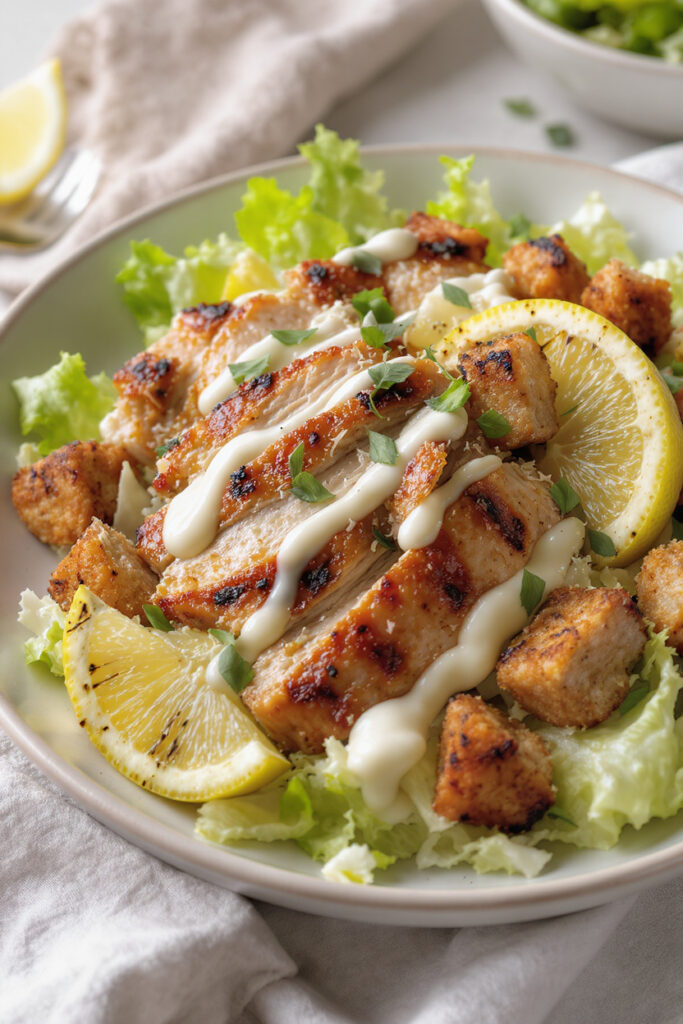 Classic Caesar gets a backyard upgrade with BBQ chicken and extra crunch. Simple, salty, smoky—especially good with homemade garlicky croutons.