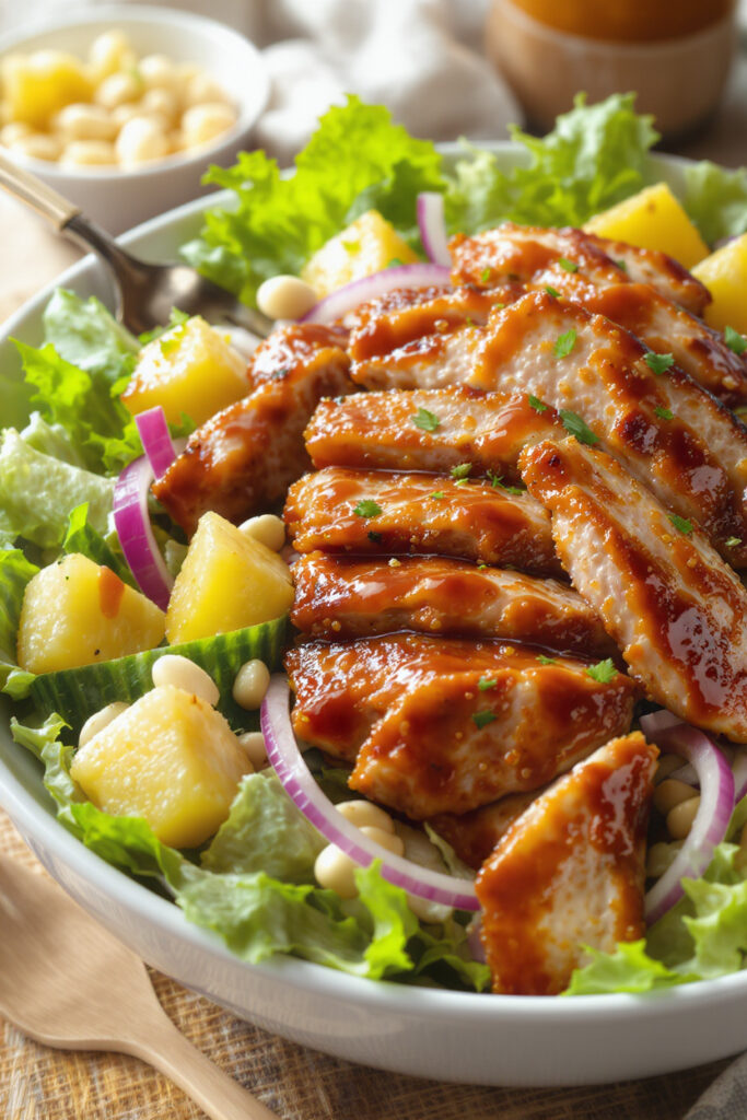 6) Hawaiian BBQ Chicken Salad (Pineapple + Macadamia)
