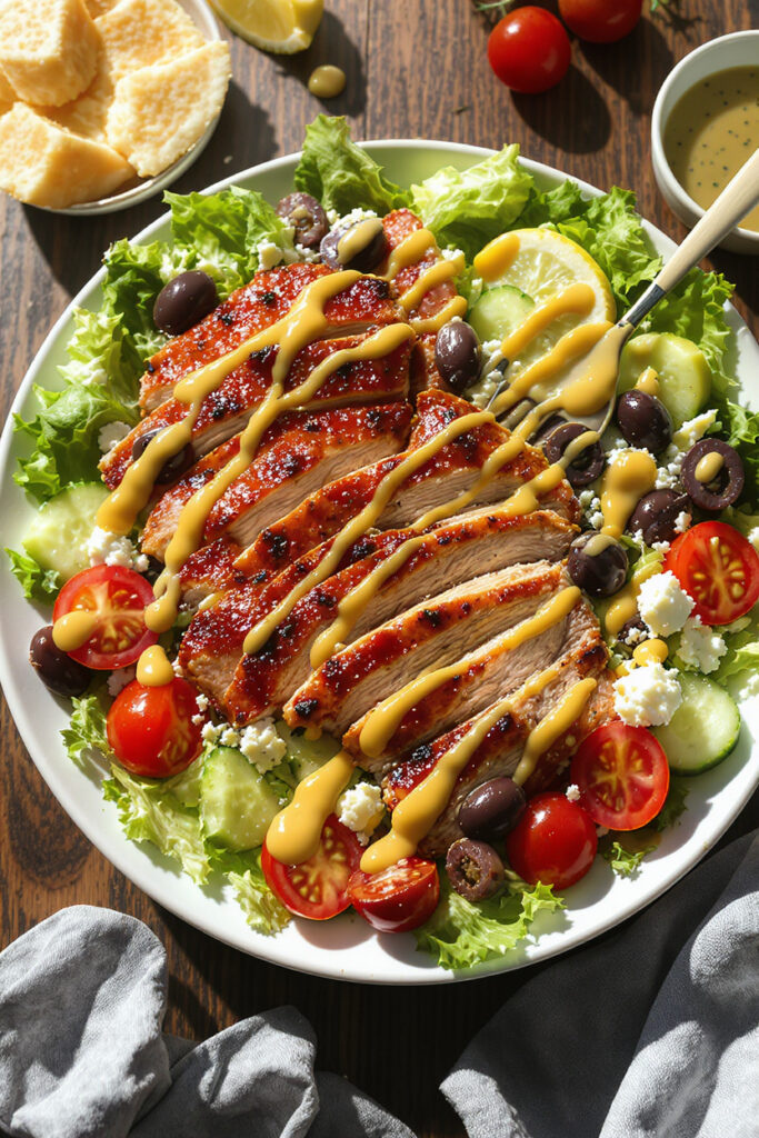 9) Greek-Style BBQ Chicken Salad (Feta + Cucumber)