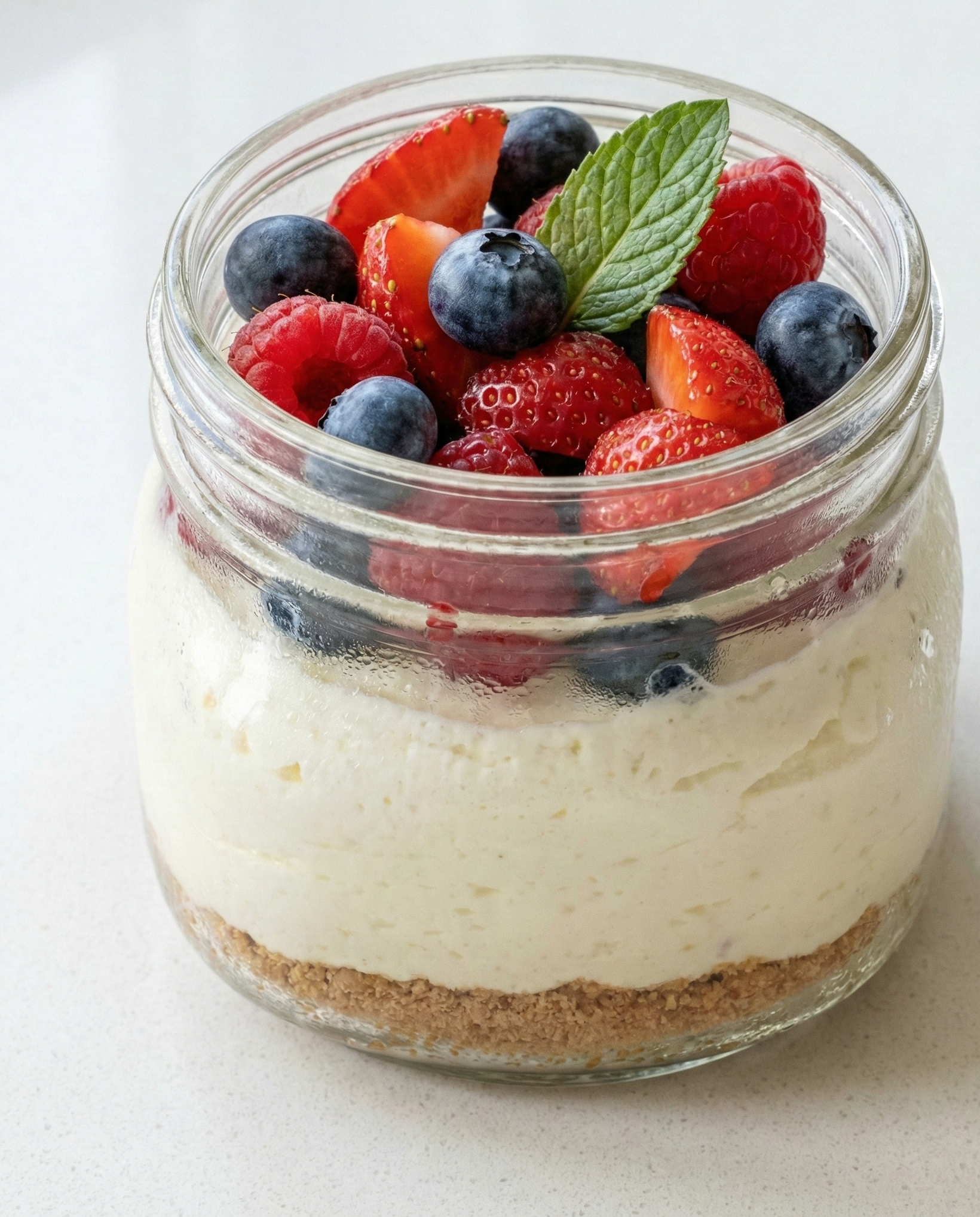 Description (20–30 words): A no-bake jar dessert with cookie crumbs, creamy cottage filling, and juicy berries. It’s easy to portion, chill, and serve like a bakery cup.