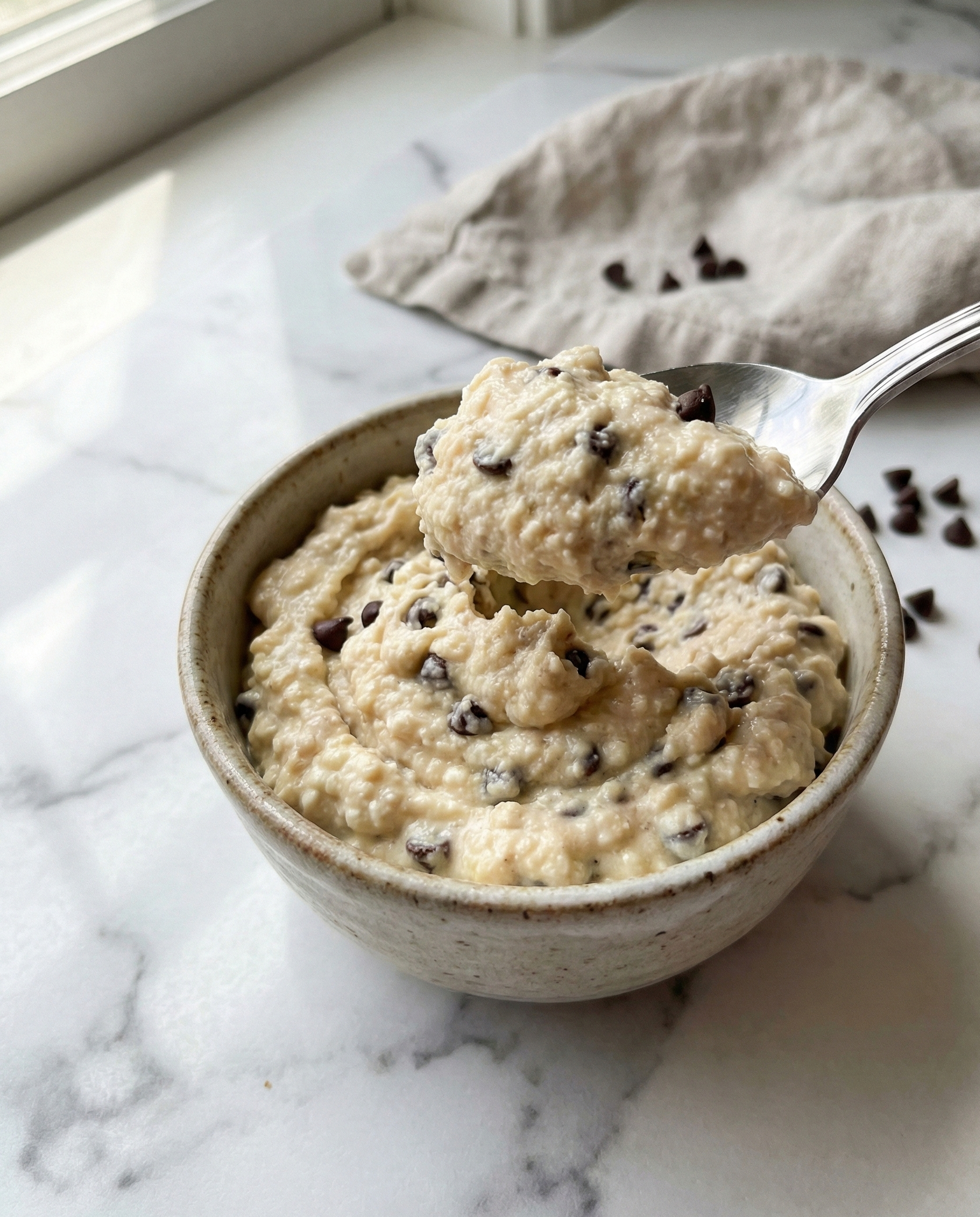 Description (20–30 words): A cookie-dough-style sweet bowl with mini chocolate chips and vanilla. It hits that “treat” craving while still feeling light and creamy.