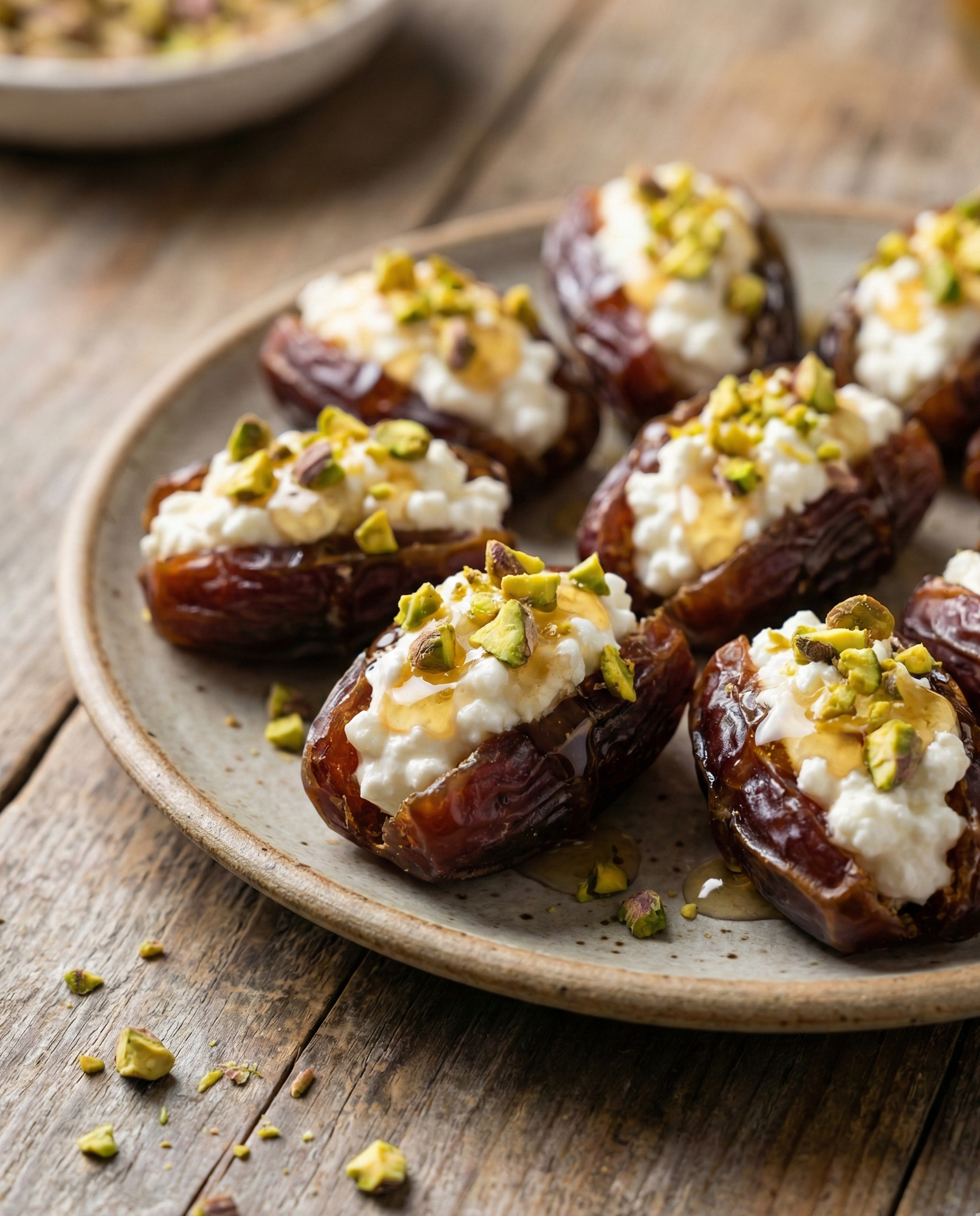 Description (20–30 words): Sticky-sweet dates stuffed with creamy cottage cheese and a drizzle of honey feel fancy but take minutes. Add nuts for crunch and instant elegance.