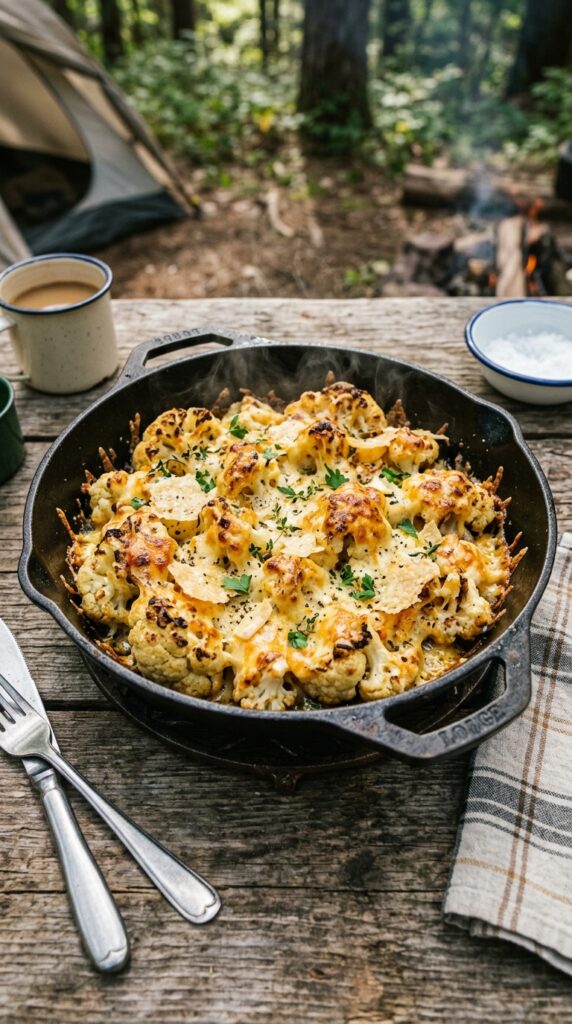 A warm, cheesy side dish perfect for keto campers. Tender cauliflower roasted with butter and layered with melted cheese creates a comforting, low-carb option. Easy to cook in foil or a skillet over a fire, it’s a flavorful addition to any outdoor meal and a great way to sneak in some vegetables.