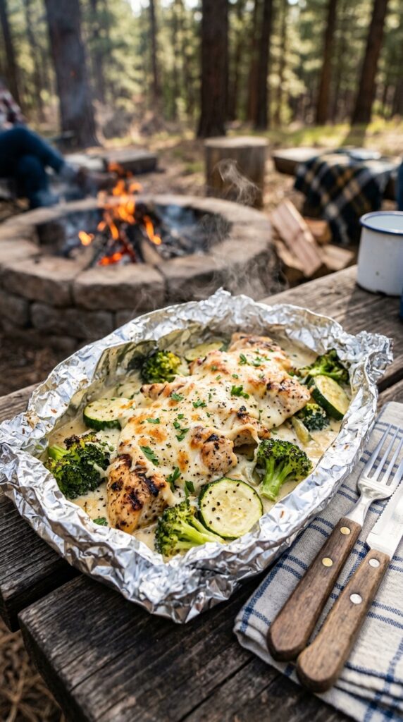 Tender chicken, creamy Alfredo sauce, and low-carb veggies come together in a foil pack for a rich, comforting meal. Perfect for camping, these individual packets cook evenly over a fire and are easy to serve without extra dishes. Keto-friendly and decadent, it’s a delicious outdoor dinner option.