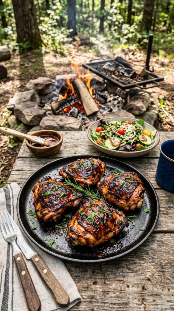 Juicy chicken thighs grilled over the campfire and coated in a low-carb BBQ sauce make for a smoky, flavorful keto dinner. Perfectly caramelized and tender, this recipe is easy to prep ahead or cook fresh on-site. It’s satisfying, protein-packed, and perfect for outdoor adventures where you want a hearty meal without carbs.