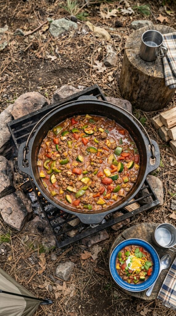 Hearty and warming, this low-carb chili is packed with ground beef, vegetables, and spices. Cooked all in one pot, it’s perfect for easy campfire cooking and keeps cleanup minimal. Full of flavor and protein, this keto-friendly chili is ideal for cozy outdoor dinners that satisfy without the carbs.