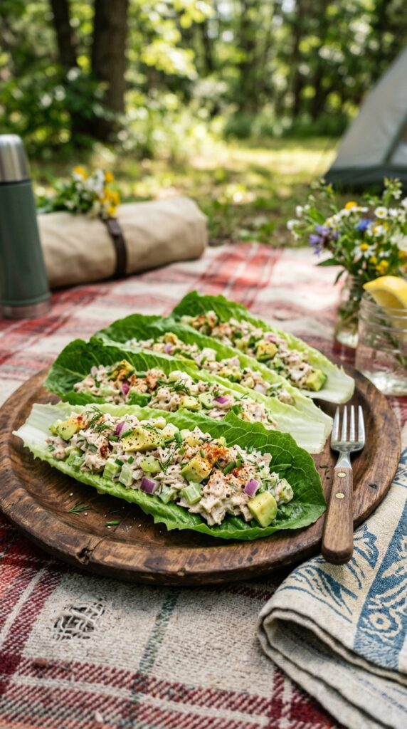 A refreshing and easy-to-make keto meal, combining creamy avocado with protein-packed tuna. Served in crisp lettuce leaves, these boats are perfect for lunch at the campsite. Quick to assemble and low-carb, they provide healthy fats, flavor, and portability—ideal for campers looking for a light yet satisfying meal in the outdoors.