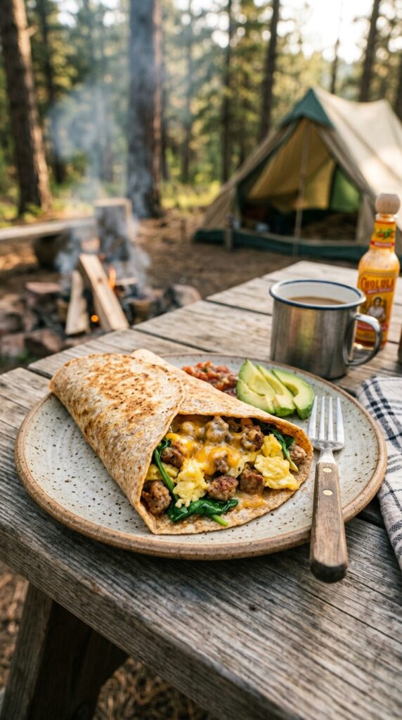 A hearty, on-the-go breakfast for keto campers, combining eggs, sausage, and melted cheese in a low-carb wrap. Quick to prepare over a camping stove or fire, this wrap provides protein and fat to fuel your morning adventures. It’s satisfying, flavorful, and perfect for portable outdoor eating.