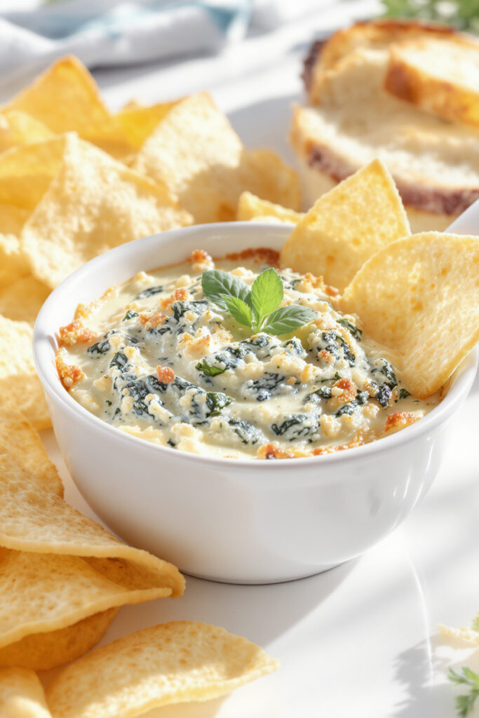 This creamy spinach artichoke dip is warm, cheesy, and full of flavor. It’s perfect for dipping chips or bread and makes a great party appetizer.