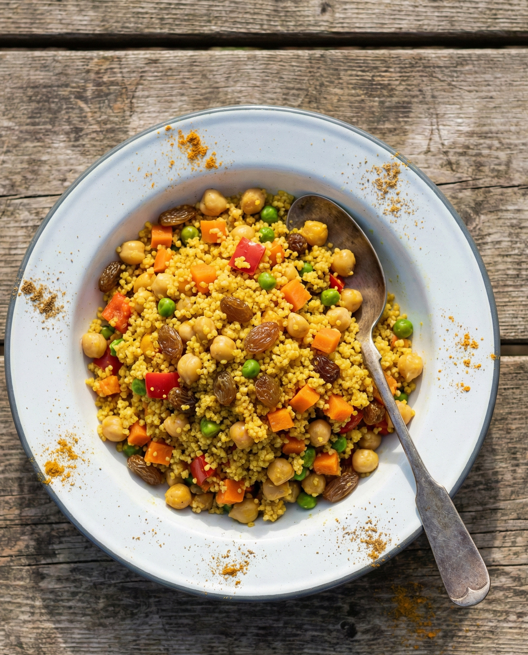 Description (20–30 words): Couscous cooks in minutes, making it ideal for camping. Add chickpeas, curry spice, and veggies for a warm, fragrant dinner with almost no cleanup.