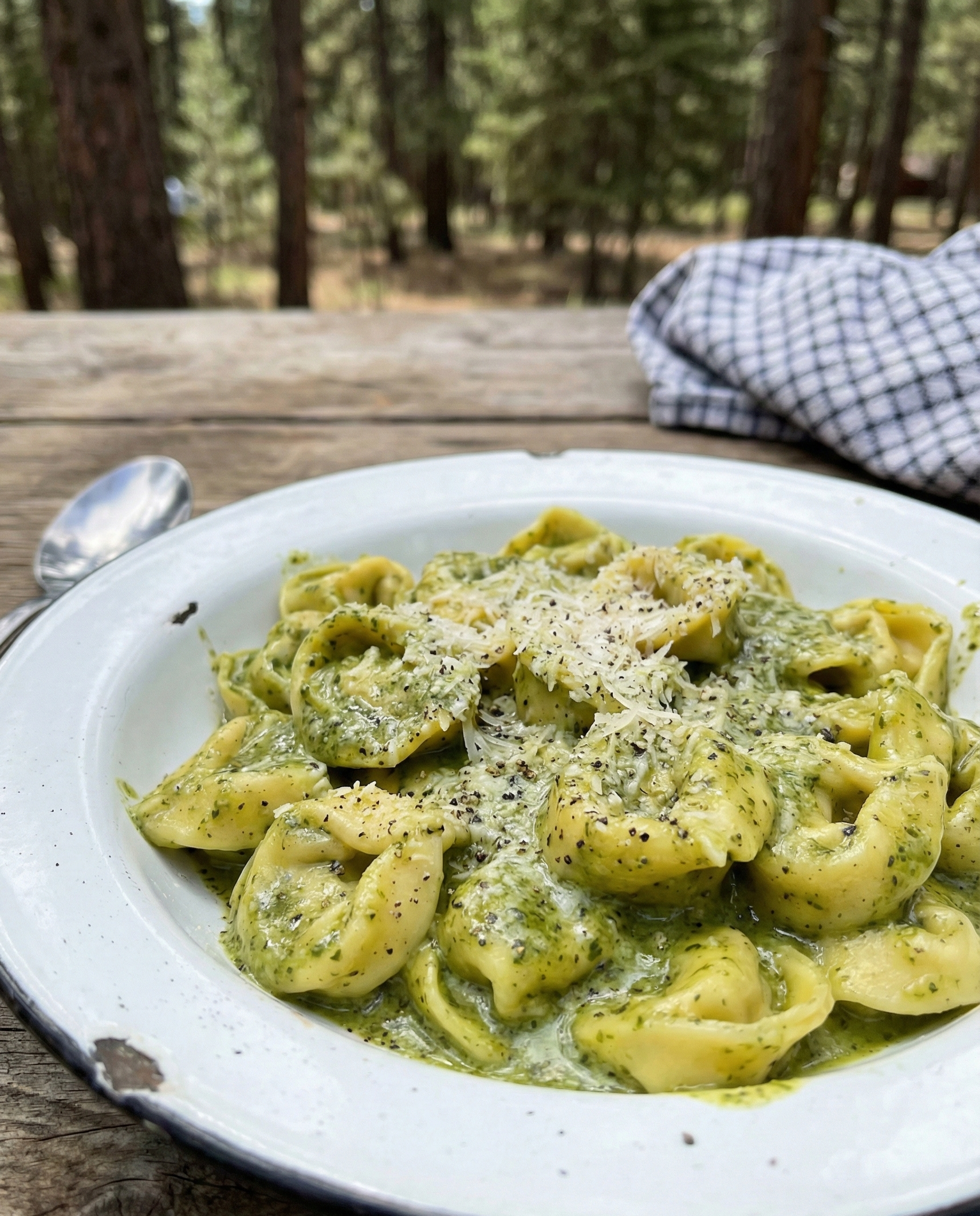 Description (20–30 words): This dinner tastes restaurant-level but packs easily. Tortellini cooks fast, then pesto and a splash of cream turn it rich and satisfying.