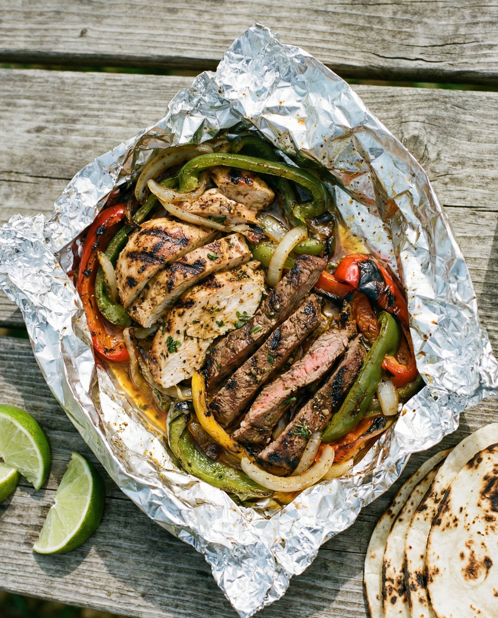 Description (20–30 words): Sizzling fajita flavor without juggling pans. Chicken or steak cooks with peppers and onions in foil, then gets wrapped in warm tortillas.
