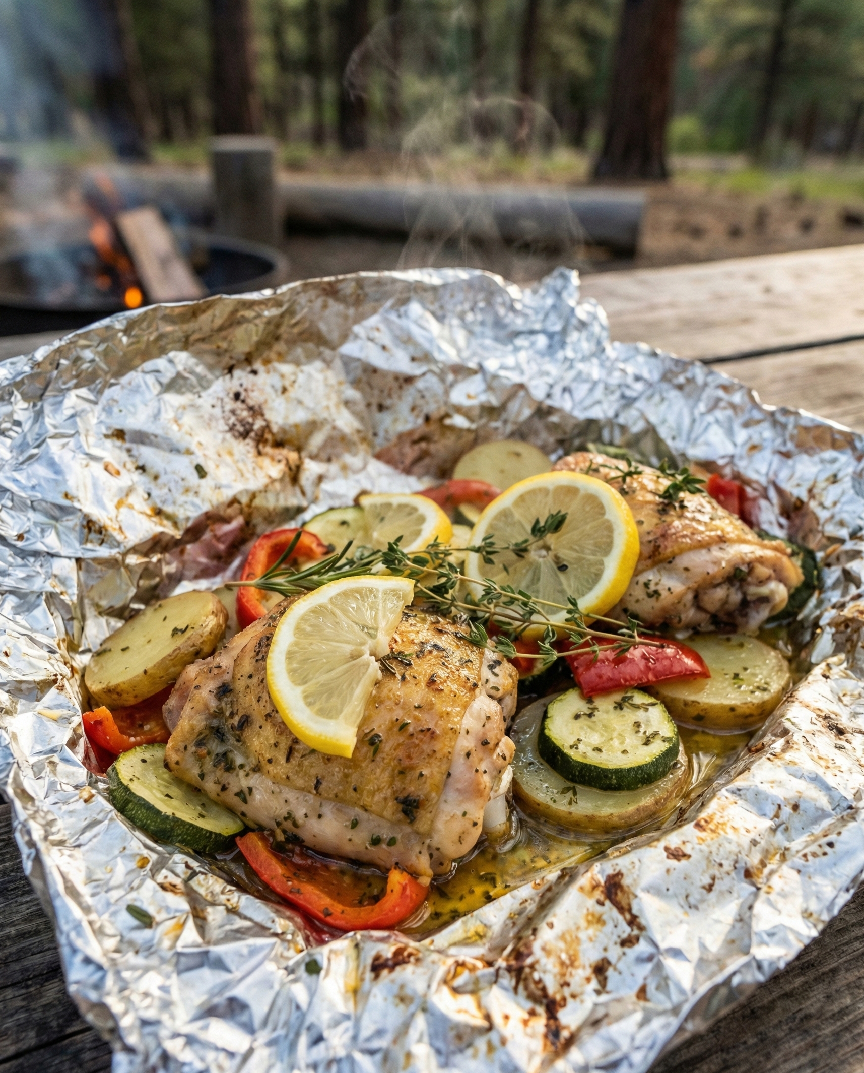 Description (20–30 words): Juicy chicken and tender vegetables steam together in a foil packet, soaking up lemon and herbs. It’s bright, filling, and basically dish-free.