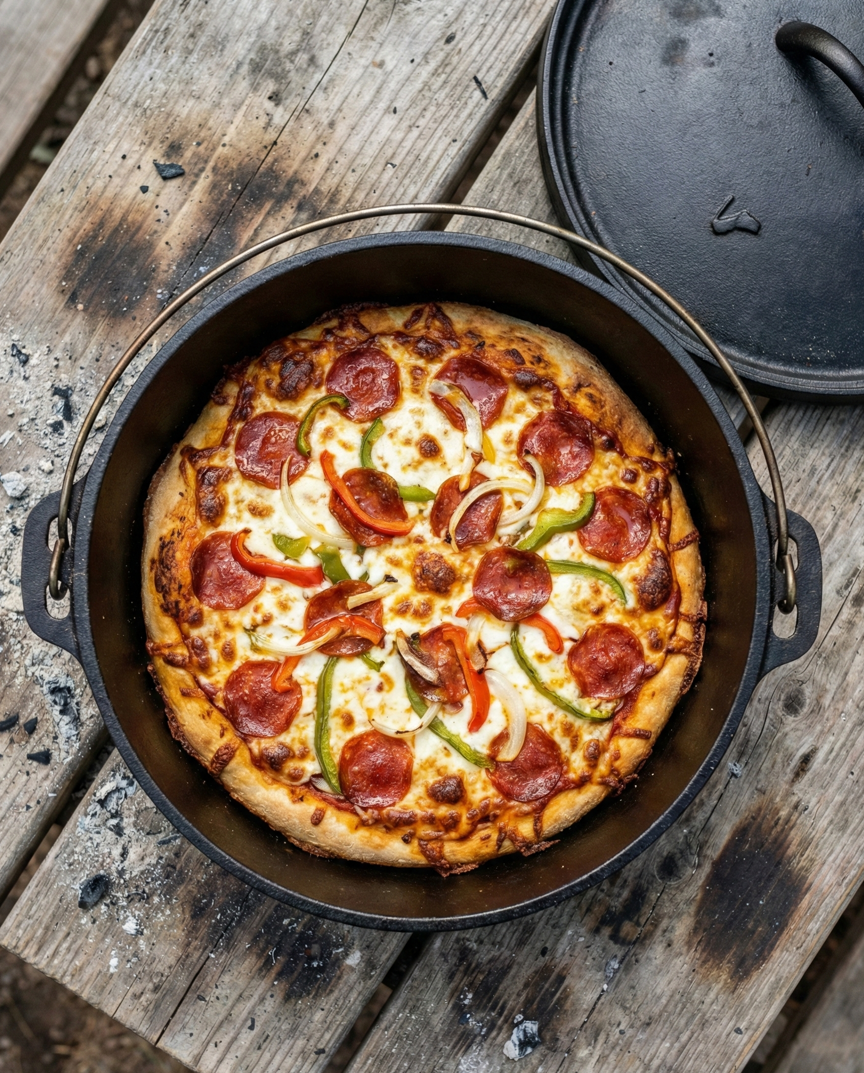 Description (20–30 words): Pizza at camp feels like a miracle. A Dutch oven creates melty cheese and crisp edges, and everyone can choose their own toppings.