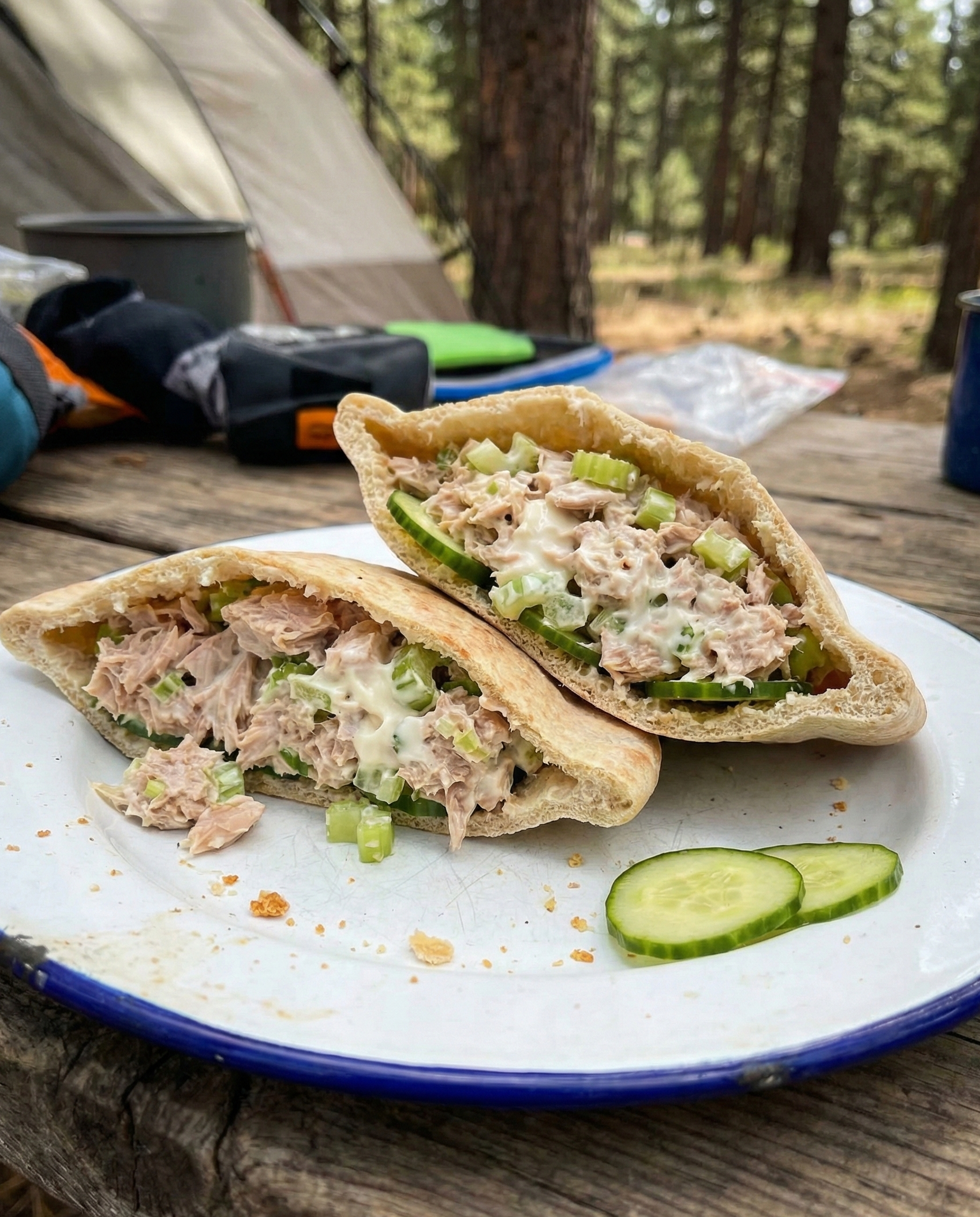 Description (20–30 words): Classic tuna salad gets a camping upgrade with pita pockets—easy to hold, easy to pack. Mix it right in the pouch to save dishes.