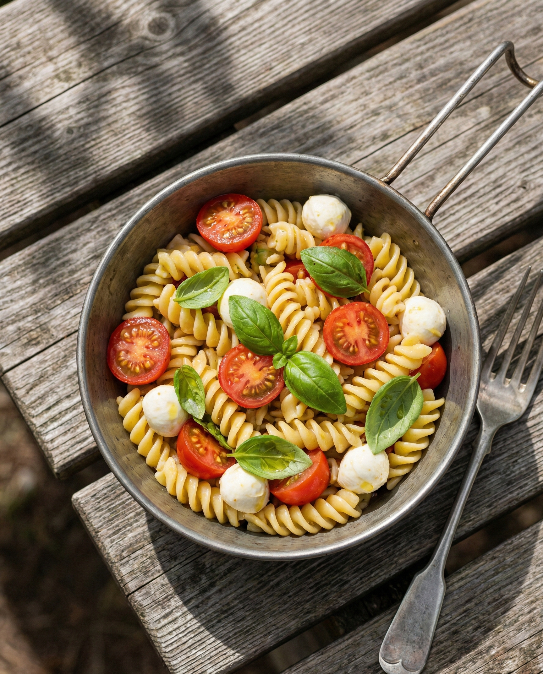 Description (20–30 words): Cook it at home, chill it overnight, and you’ve got a cool, hearty lunch. Tomato, mozzarella, and basil taste like summer with zero campsite cooking.