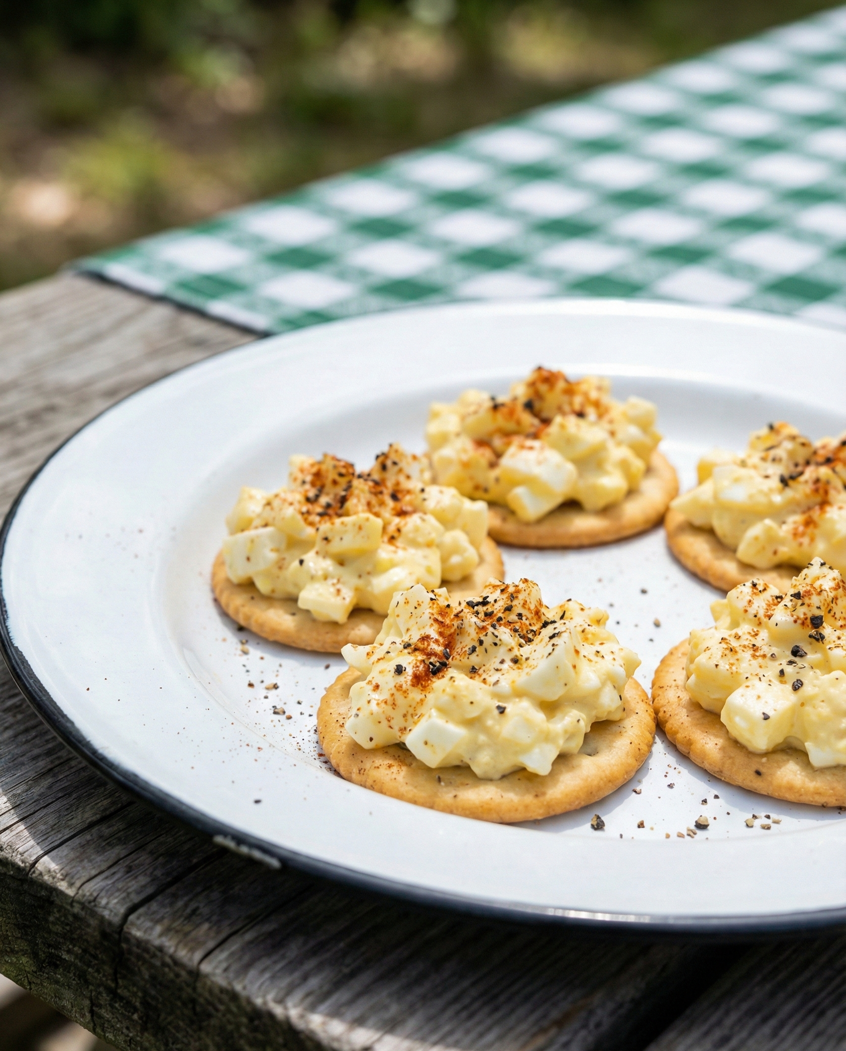Description (20–30 words): Creamy egg salad is a cooler-friendly classic that feels filling without being heavy. Serve on crackers to avoid squished sandwiches and keep lunch crunchy.