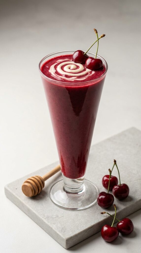 Tart cherries are nature’s recovery food — they reduce muscle soreness naturally. Paired with vanilla protein and yogurt, this smoothie is ideal post-gym.