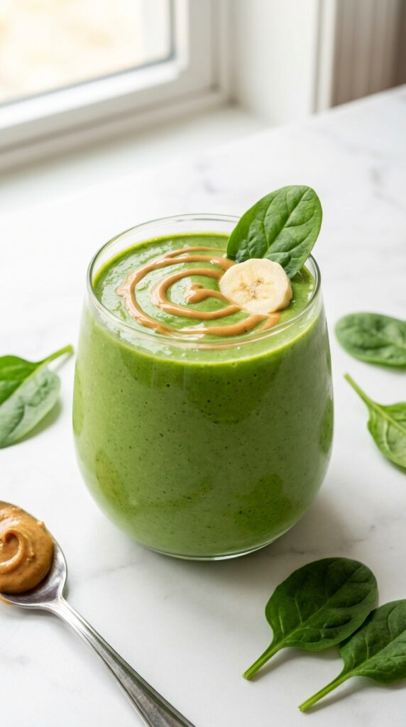 Don’t let the color fool you — this smoothie is sweet, creamy, and loaded with nutrients. A great way to sneak greens into your morning without even noticing.