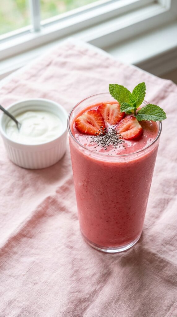 Fresh, fruity, and naturally thick — this smoothie gets all its protein from Greek yogurt, no powder needed. It’s bright, tangy, and wonderfully refreshing.