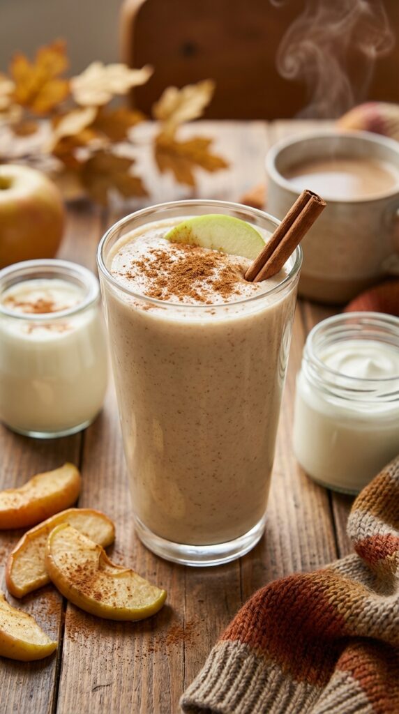 Warm spice flavors in a cold, creamy smoothie — it sounds wild but works beautifully. This one is like apple pie you can drink.