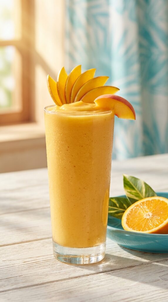 Tropical and vibrant, this smoothie is like summer in a glass. The natural sweetness of mango and peach means you barely need any added sugar.