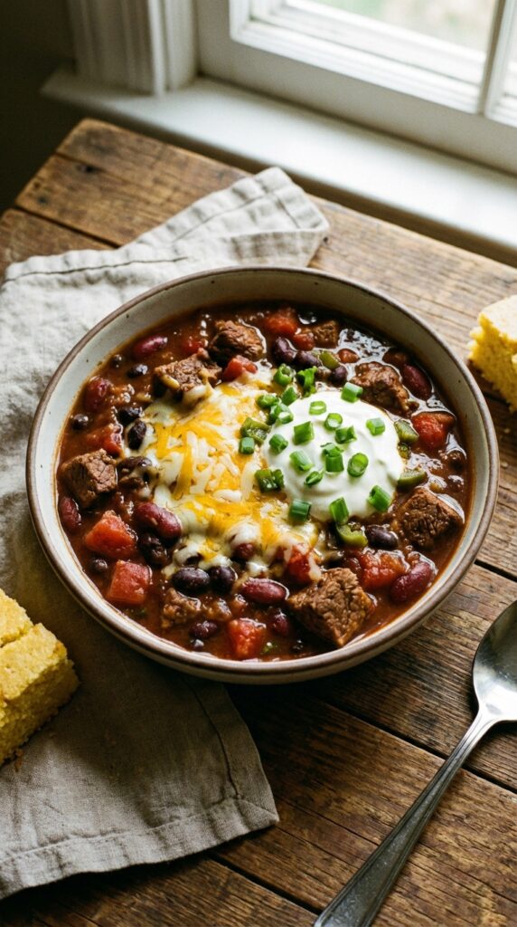 Thick, hearty chili packed with beans, beef, and bold spices. It’s perfect for family dinners and even better the next day.