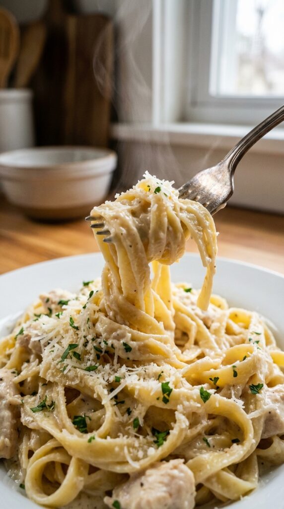 Creamy Alfredo sauce coats tender chicken for a rich, satisfying dinner that feels special but requires minimal effort.