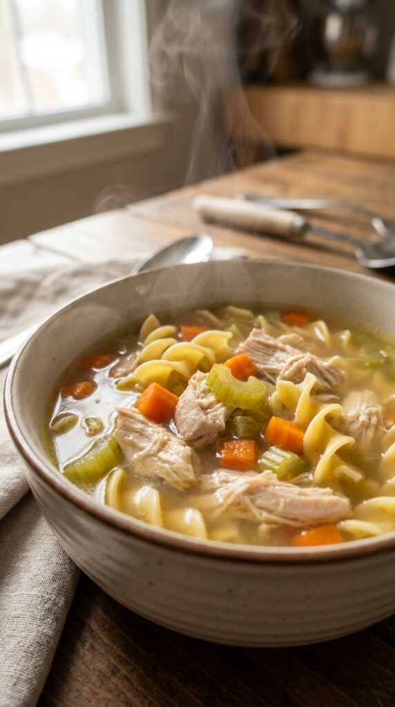 Classic comfort food with tender chicken, soft noodles, and warm broth. It’s simple, soothing, and great for any day.