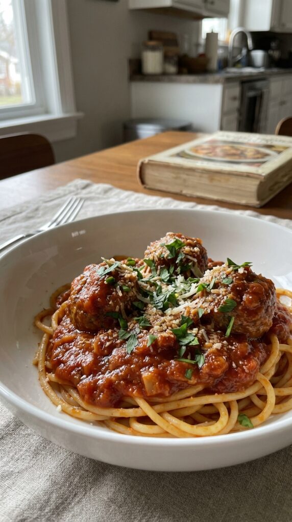All the flavor of traditional spaghetti with almost no effort. The meatballs turn tender while soaking up rich tomato sauce all day long.