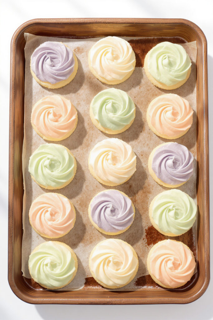 These Easter Buttercream Cookies feature gorgeous swirled frosting in lavender, mint, and peach. Soft cookies paired with creamy frosting create pure bliss.