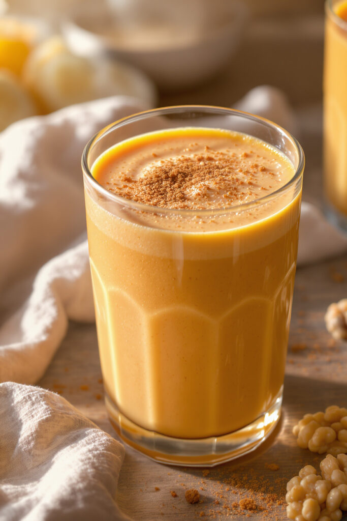 This tastes like carrot cake in a glass—warm spices, natural sweetness, and a creamy base. It’s a fun way to sneak veggies into breakfast.