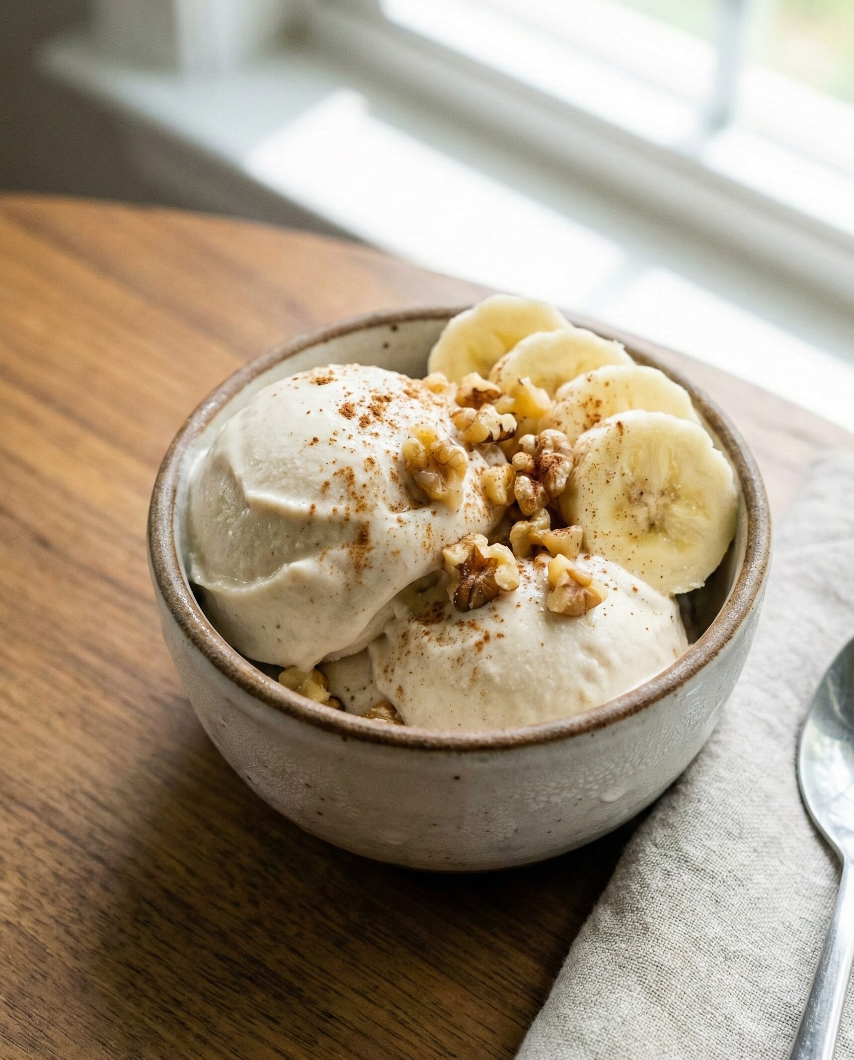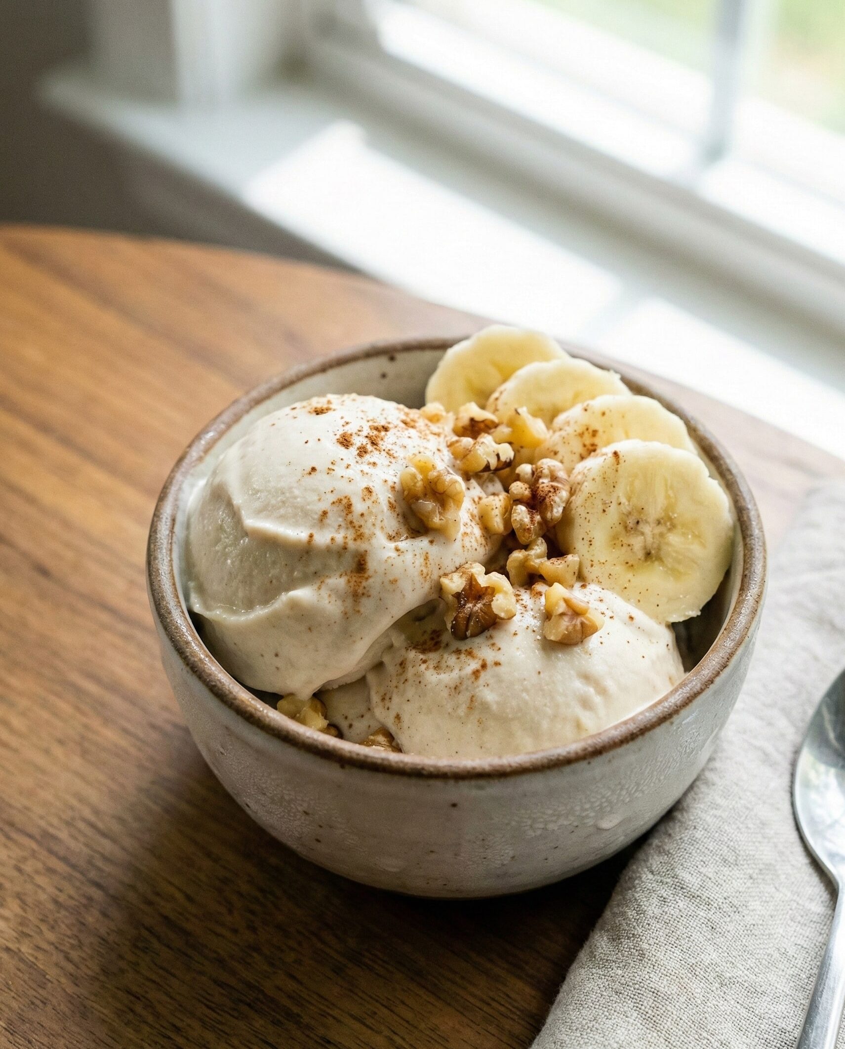 This banana-based protein ice cream is creamy, naturally sweet, and refreshing. It’s made with simple ingredients and delivers a satisfying dessert that feels indulgent while boosting protein intake.
