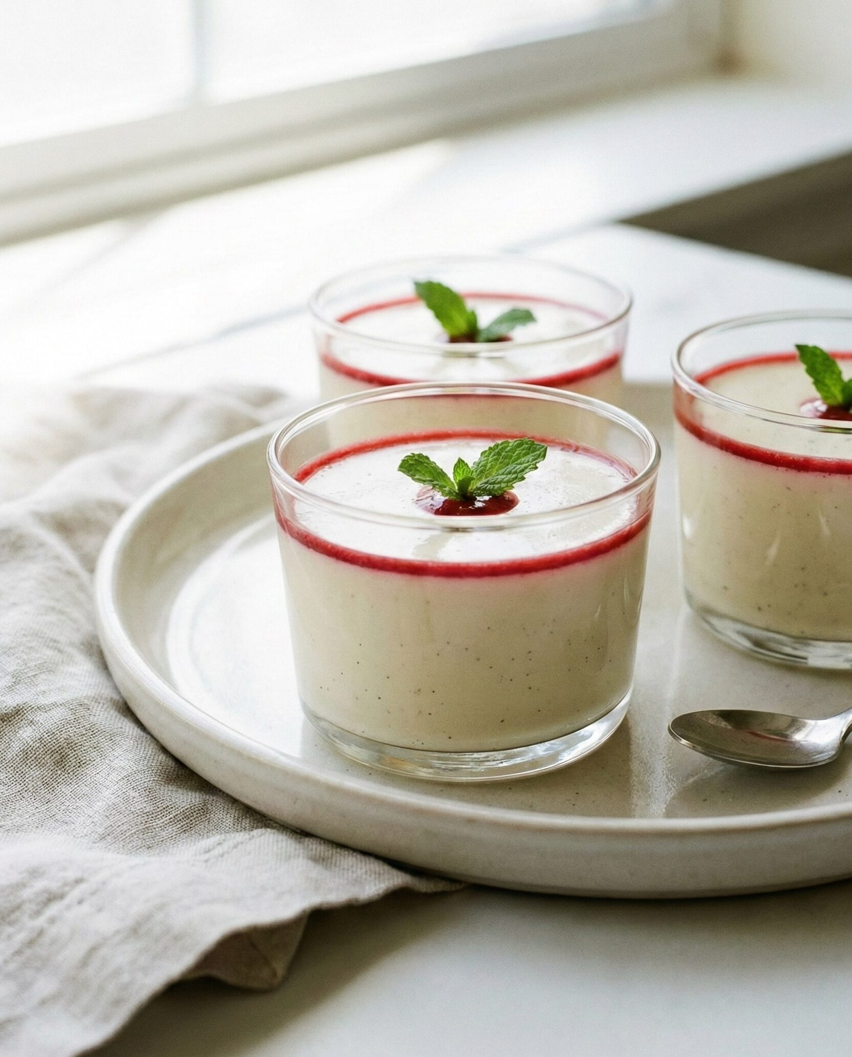 This vanilla protein panna cotta is silky, elegant, and lightly sweet. It’s a refined high protein dessert that feels indulgent while remaining light and nourishing.
