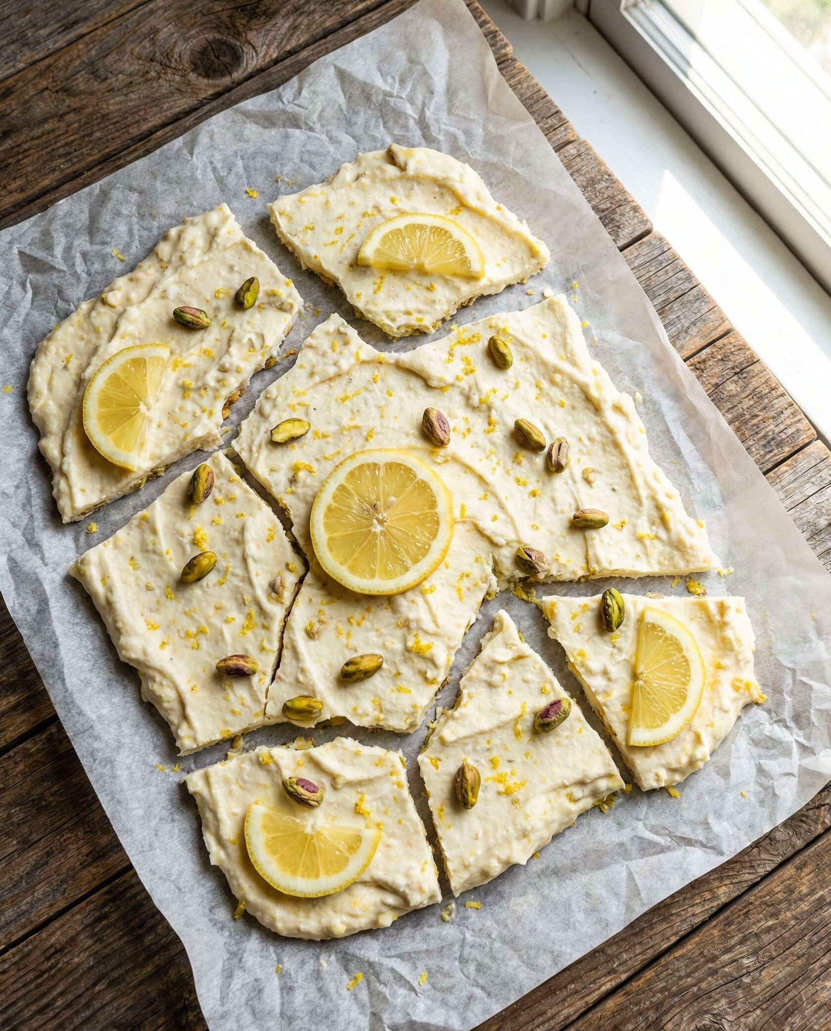 This lemon yogurt bark is refreshing, tangy, and protein-rich. It’s a light frozen dessert that feels indulgent while staying nourishing and easy to portion for healthy snacking.