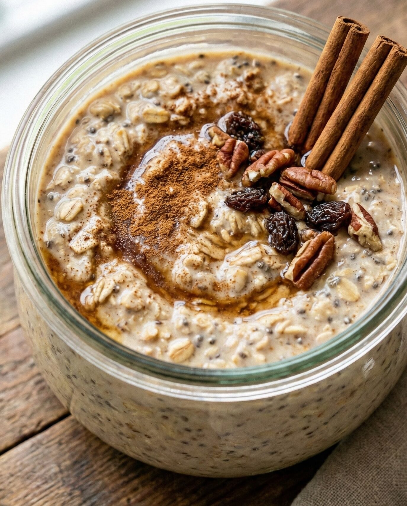 These protein overnight oats taste like dessert while delivering long-lasting energy. Warm cinnamon flavor and creamy texture make them perfect as a high protein dessert or healthy breakfast option.