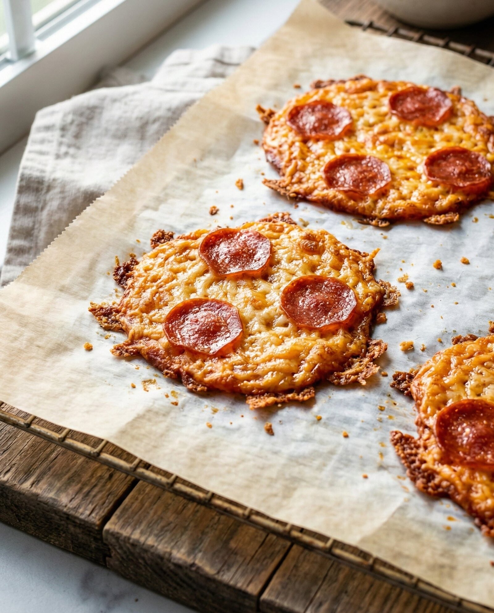 Pepperoni cheese crisps are crunchy, savory low carb treats made with just two main ingredients. They’re perfect healthy keto snacks when you want something salty, satisfying, and completely gluten-free.