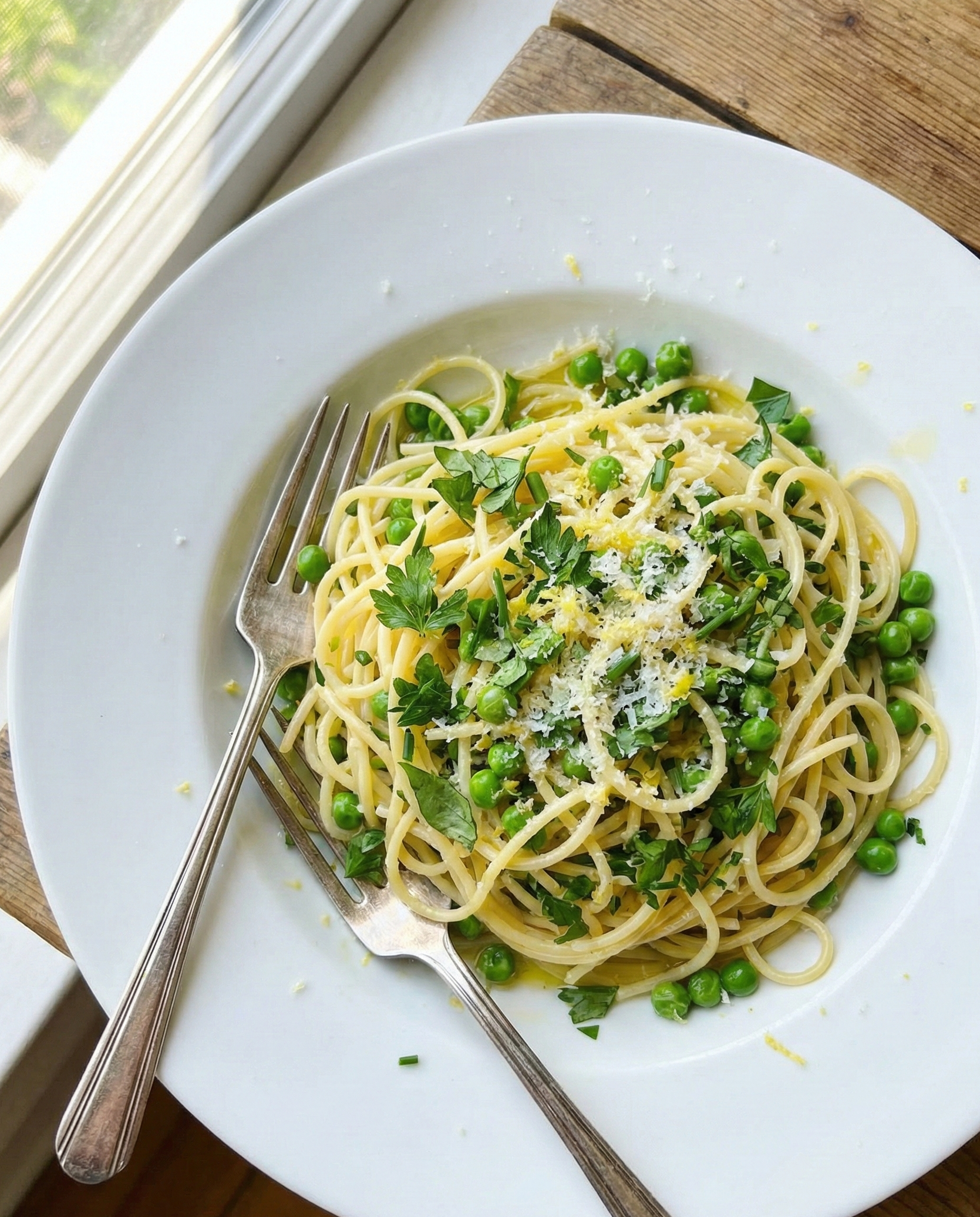 Description (20–30 words): This is the “clean and green” bowl: peas, fresh herbs, lemon, and just enough Parmesan. It’s simple, fresh, and endlessly repeatable.