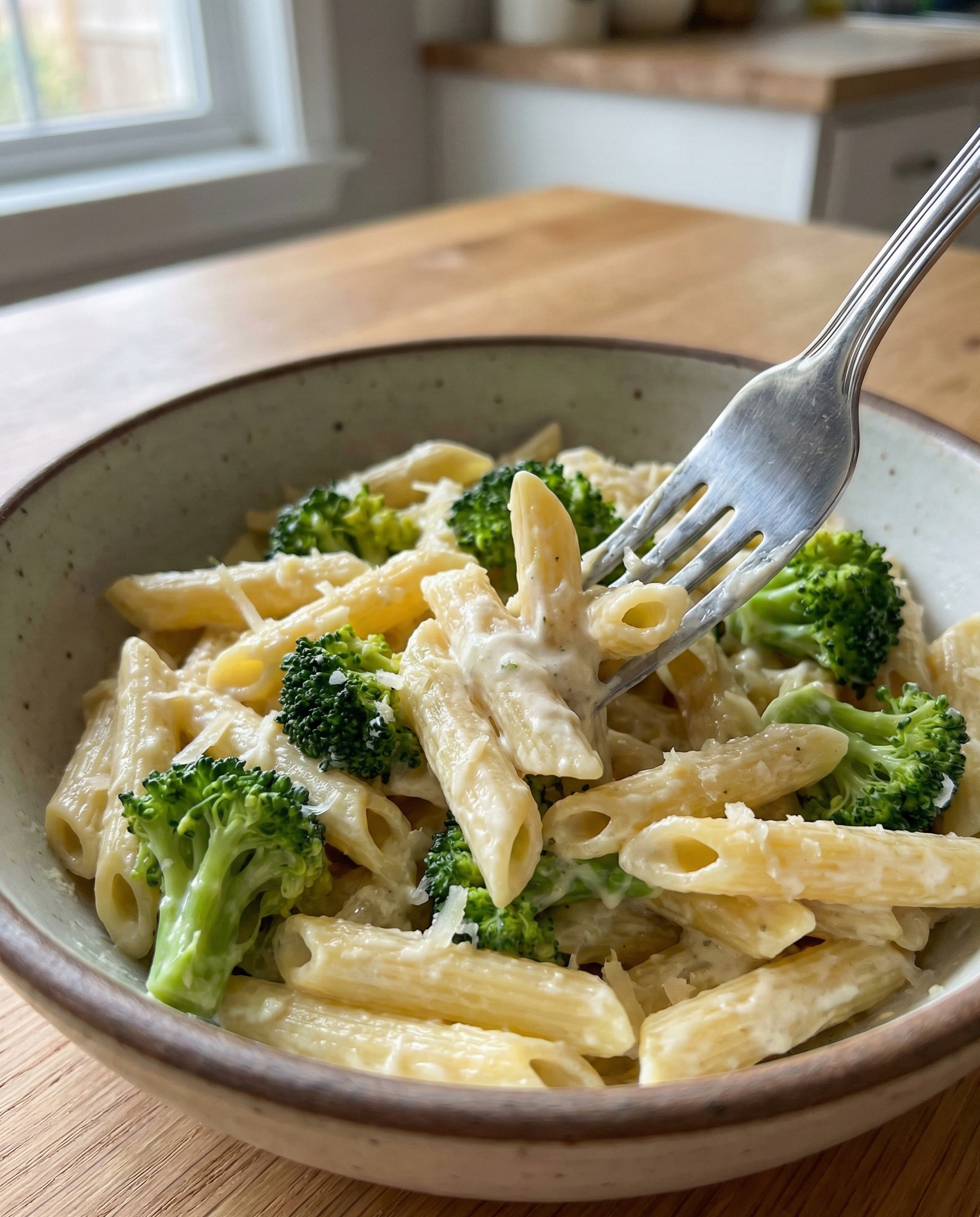 Description (20–30 words): This lighter Alfredo uses Greek yogurt for creamy texture without heavy cream. Lemon and broccoli keep it fresh, and it still feels satisfyingly saucy.