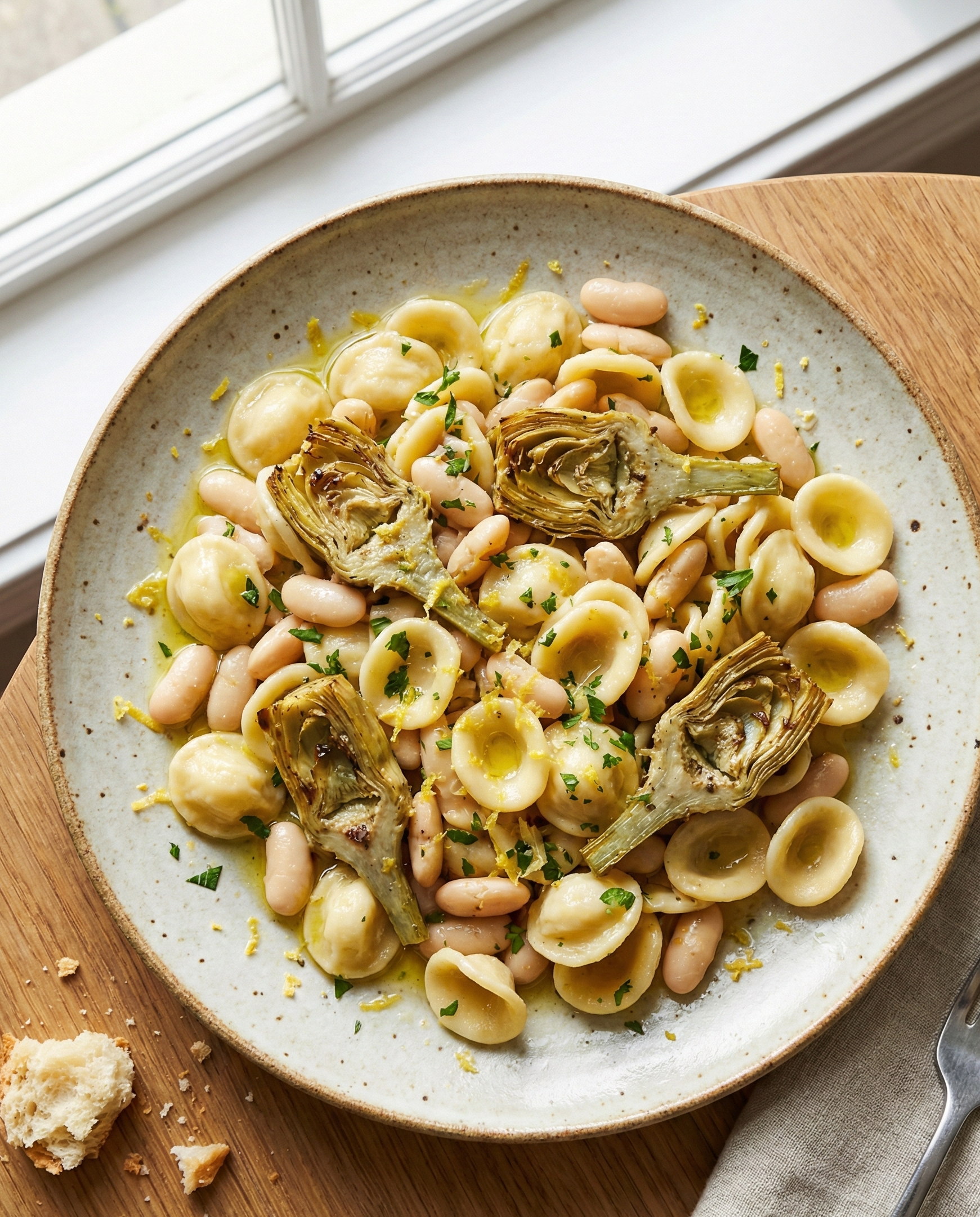 Description (20–30 words): White beans and artichokes make this hearty but still springy. Lemon and olive oil keep it bright, with a satisfying, protein-rich bite.