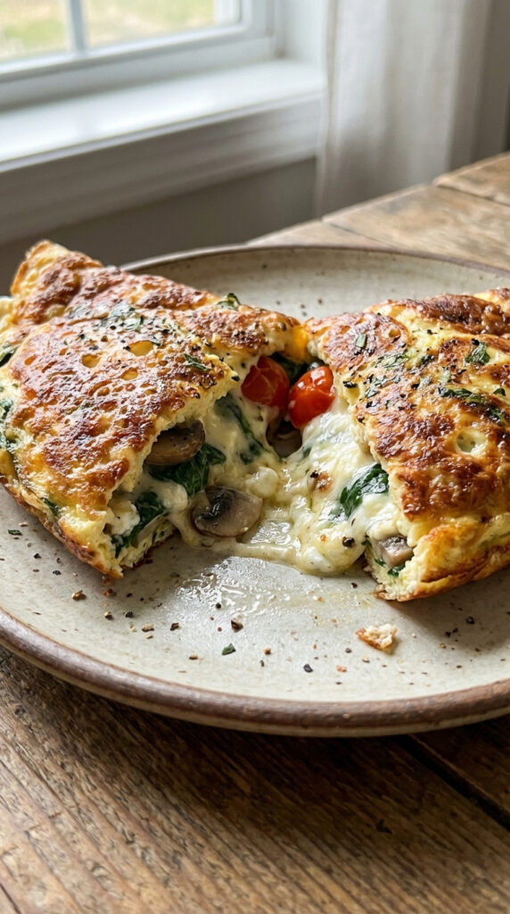 A fluffy omelet filled with vegetables and creamy cottage cheese makes a satisfying, protein-packed breakfast or light dinner.