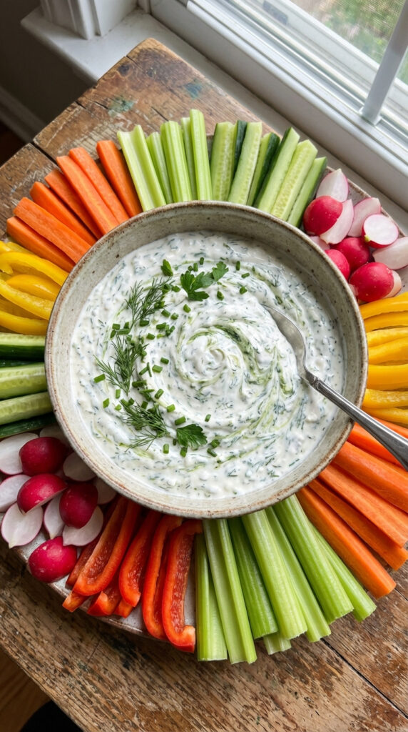 Blended cottage cheese with herbs creates a creamy, high-protein dip perfect for vegetables, crackers, or wraps.