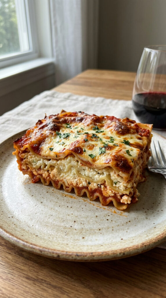 This lighter lasagna uses cottage cheese instead of ricotta, creating a protein-rich, creamy layer that pairs perfectly with hearty tomato sauce and pasta sheets.
