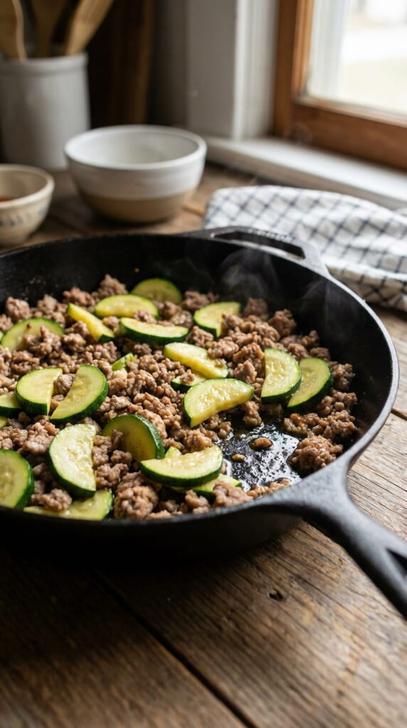 A simple one-pan dinner with lean turkey and tender zucchini, perfect for a quick, low-carb meal.