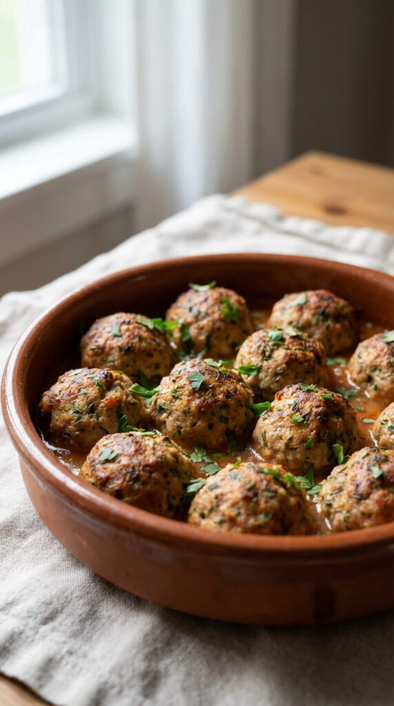Tender baked turkey meatballs are juicy, protein-rich, and perfect over pasta, rice, or enjoyed on their own.