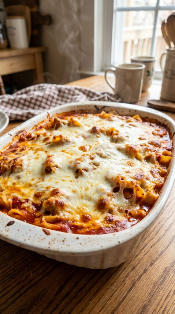 A comforting baked pasta layered with seasoned turkey and marinara for a high-protein twist on a family favorite.