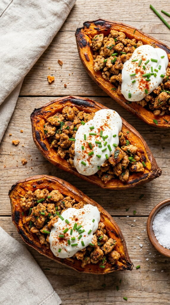 Roasted sweet potatoes filled with spiced turkey create a nutritious, satisfying dinner packed with flavor and protein.