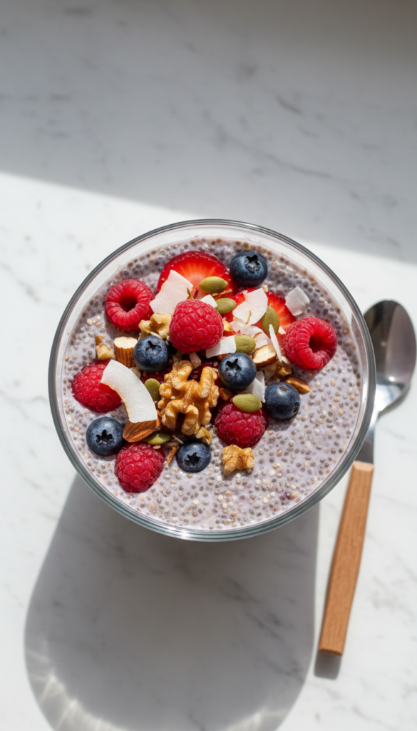 Chia seeds soaked in almond milk with added protein powder. Thick, creamy, and perfect when you want something cool and filling.