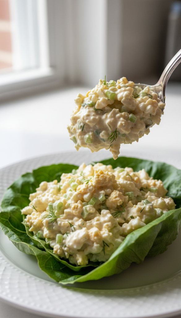 Creamy egg salad spooned into crisp lettuce leaves. Light, refreshing, and packed with protein for a quick meal without cooking.